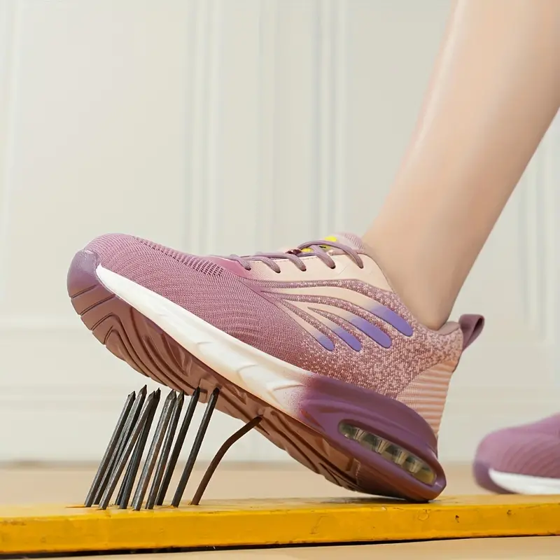 Leichte und modische Sicherheitsschuhe für Damen mit Stahlkappe und durchtrittsicherer Sohle für optimalen Schutz und Komfort. Das atmungsaktive Strick-Obermaterial und das Mesh-Innenfutter bieten frischen Tragekomfort, während die robuste PU-Sohle für Langlebigkeit sorgt.